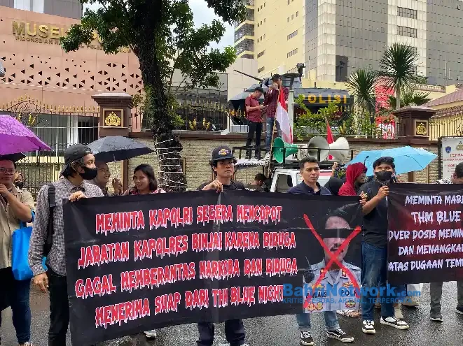 Ledakan kemarahan massa meletup di depan Mabes Polri, Jakarta. Senin (3/11/2025), ratusan mahasiswa dan pemuda yang tergabung dalam Persatuan Mahasiswa dan Pemuda Langkat–Binjai (PMPLB) turun ke jalan, menyerukan ultimatum keras terhadap penegak hukum. Mereka menuding Polres Binjai diduga “main mata” dengan jaringan bandar narkoba dan menuntut Presiden RI serta Kapolri segera turun tangan menertibkan aparat yang dianggap gagal dan terlibat.
