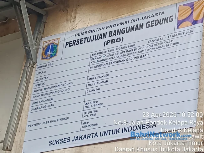 Bahrinetwork.com | Jakarta — Skandal dugaan pelanggaran Perizinan Bangunan Gedung (PBG) kembali mencuat dan kali ini baunya menyengat dari kawasan Duren Sawit. Sebuah bangunan di Perkav Pondok Kelapa Raya diduga “naik lantai diam-diam”, melampaui izin resmi tanpa tindakan berarti dari pihak berwenang.